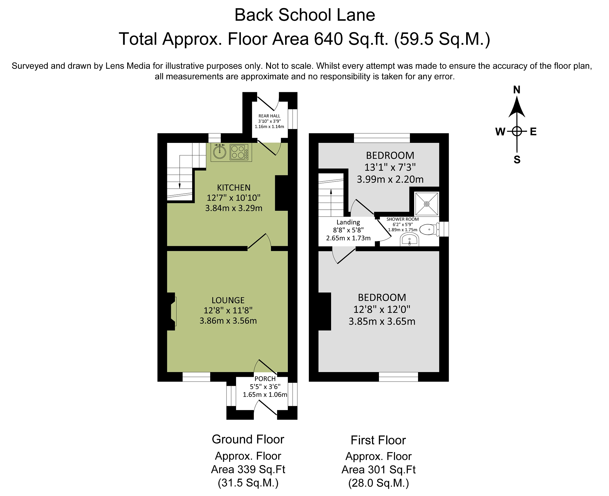 The property features a cosy layout with two bedrooms and a bathroom upstairs.
